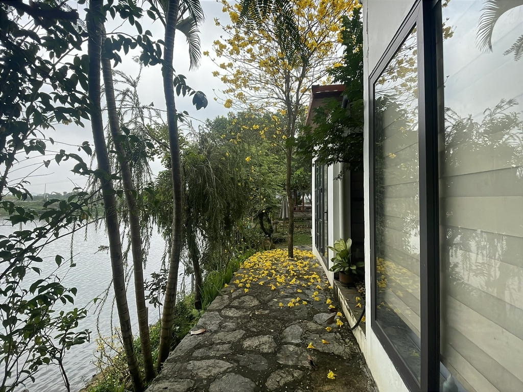 · Trước căn có lối dẫn vào được trang trí tiểu cảnh siêu đẹp, cạnh khu nhà sát bể bơi. Thích hợp tổ chức liên hoan, party, ăn uống BBQ ngoài trời. Vườn hoa hồng, không gian xanh ngoài trời, khu vực sân vườn check in, khu vui chơi chung của villa (xích đu), khu vực dịch vụ ( đồ ăn nhẹ, đồ uống) ngoài trời có mái che, có ghế ngồi quầy cafe có view hướng ra hồ.