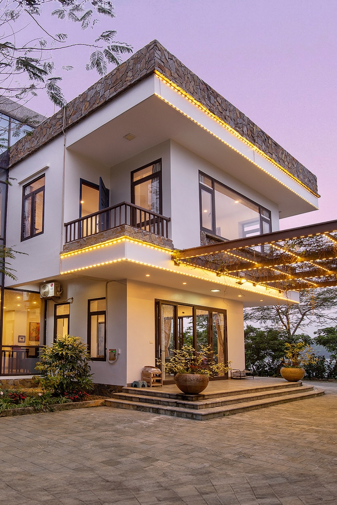 · Thiệt kế nhà theo phong cách hiện đại được chia tầng và khu riêng biệt.