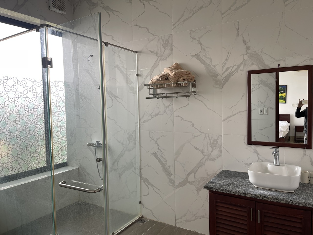 · 03 nhà tắm rộng, sạch sẽ gồm cabin tắm đứng,thiết bị nóng lạnh, bồn rửa mặt, khăn tắm, máy sấy tóc, các dụng cụ vệ sinh cá nhân.